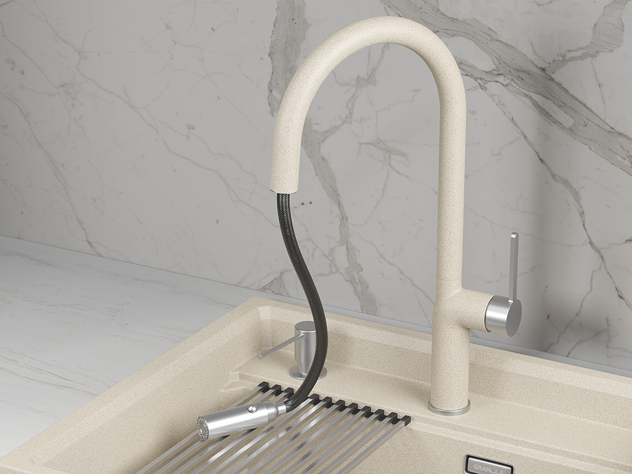 Доступен в нескольких цветах, что позволяет легко вписать его в любой интерьер. Обновите свою кухню с помощью смесителя GR-9010!